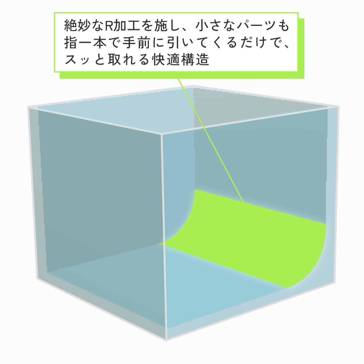 手前にR加工を施しており、残り1枚のワッシャーでも指一本で取り出せるストレスフリー構造。