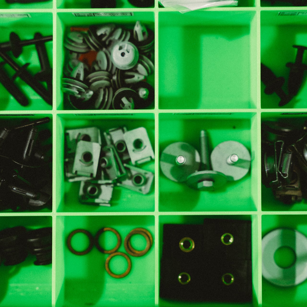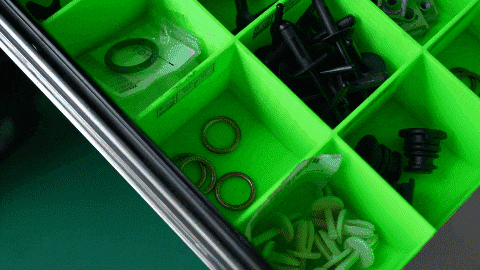 GEARFIXの中で、整備現場で多用される小物パーツ(クリップ、ヒューズ、ボルト等)に特化した収納ライン。