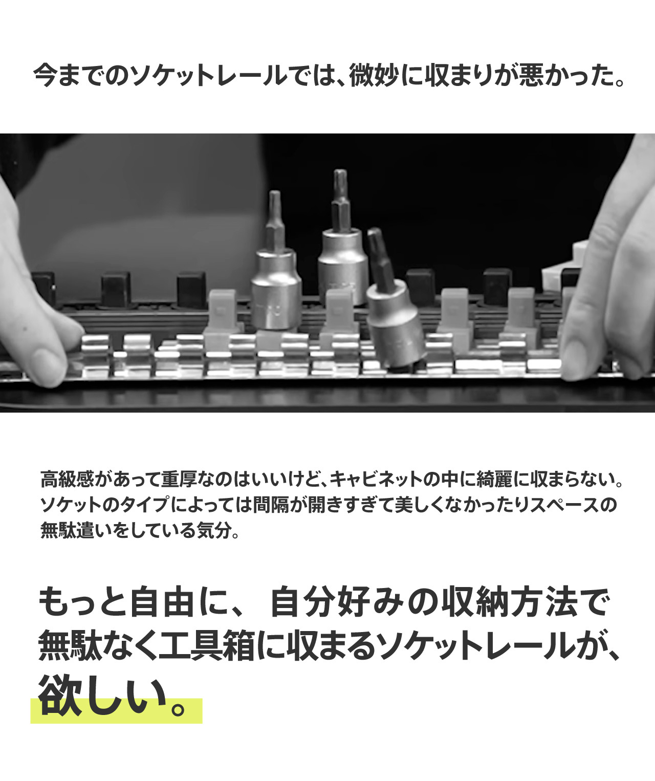 既存のGRID(6cmモジュール)、BASE(トレー型)に続き、RAILは“直線で組み立てる”という新しい整理の形を提供します。