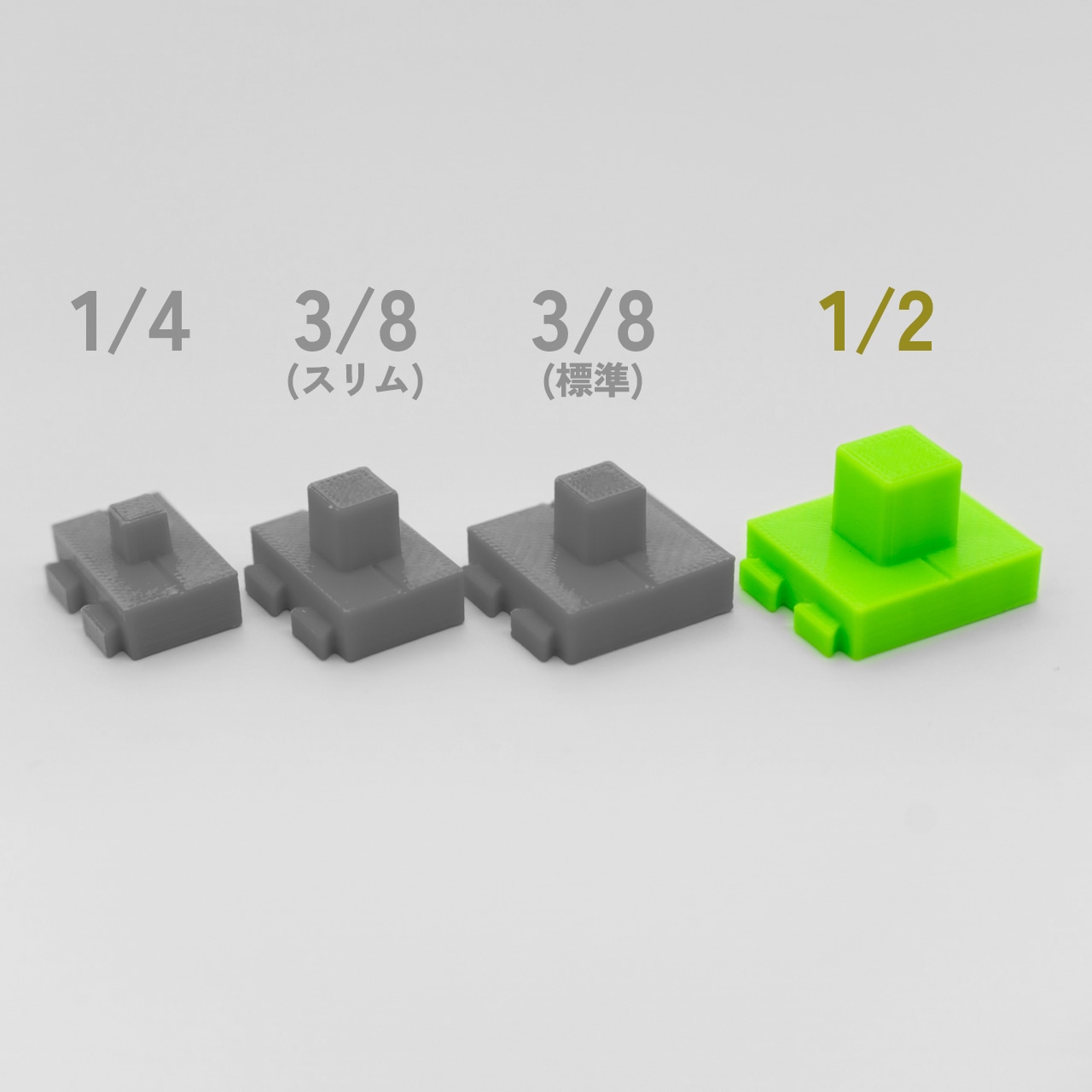 1/4・3/8・1/2を1本のレールに混在収納可能。