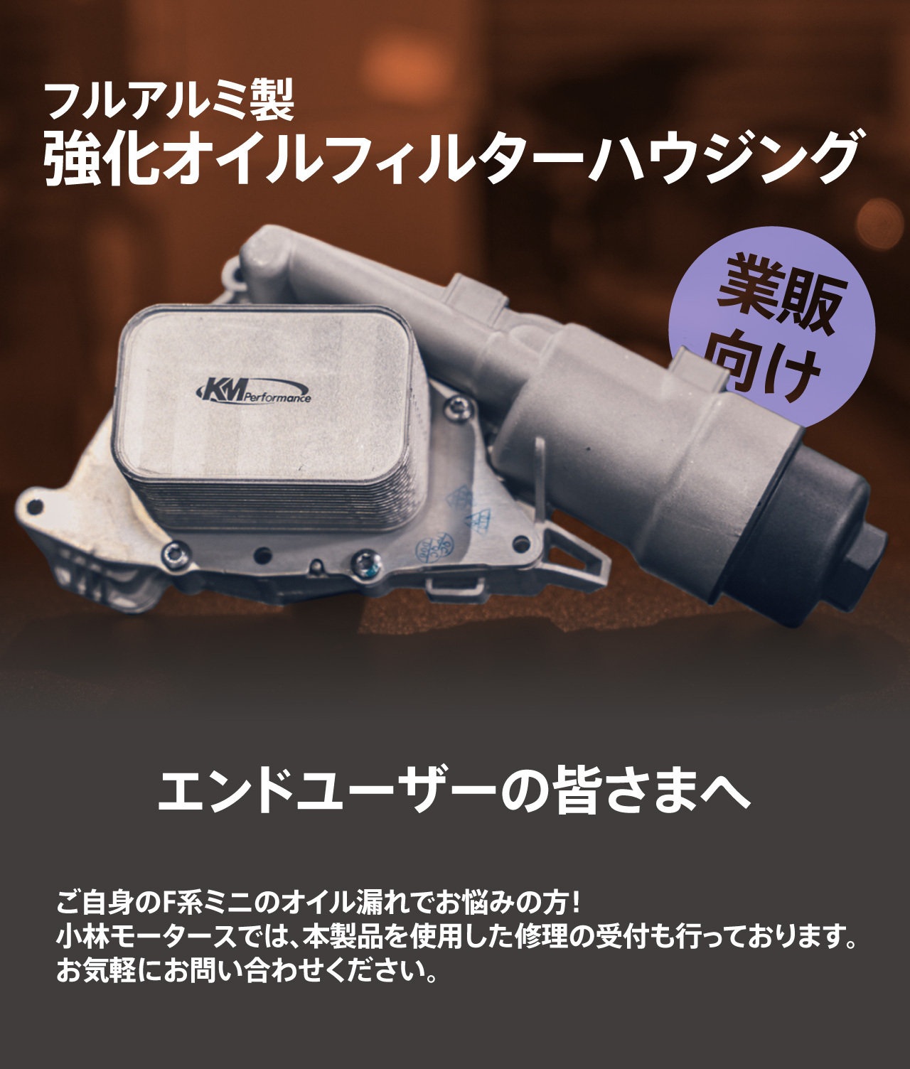 KM Performance 【第3世代F系MINI用】アルミ製強化オイルフィルターハウジング【業販専用】