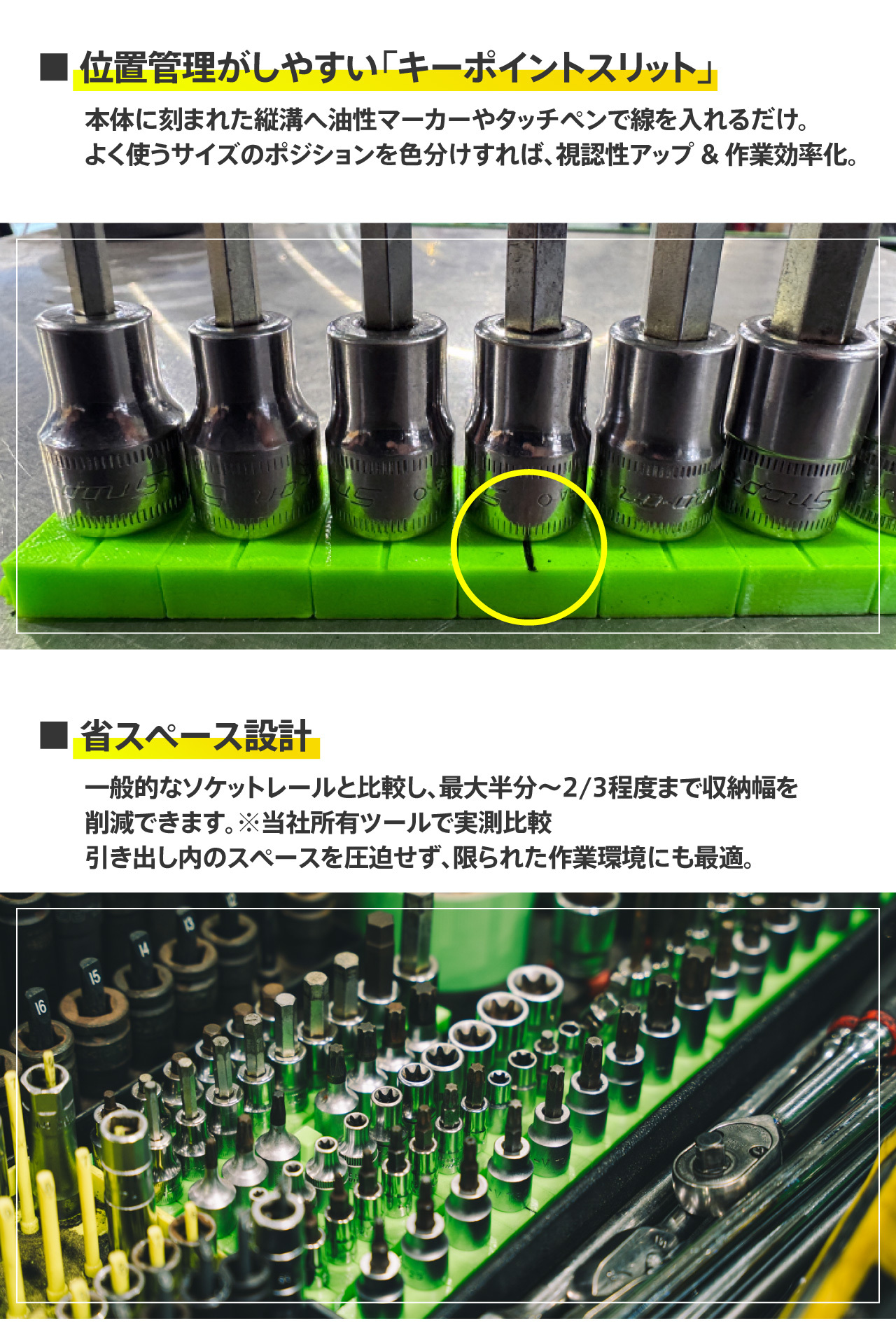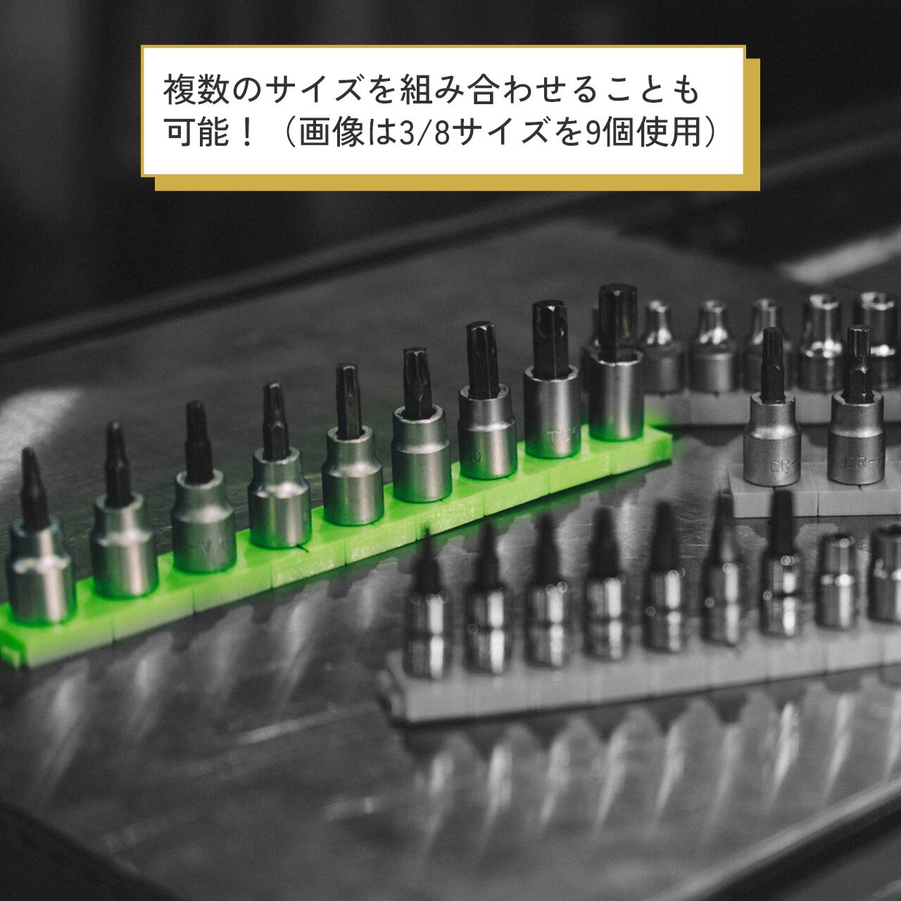 3Dプリンター製のジャストフィット設計を活かし、「プロ目線の本当に使える収納」だけを商品化しています。